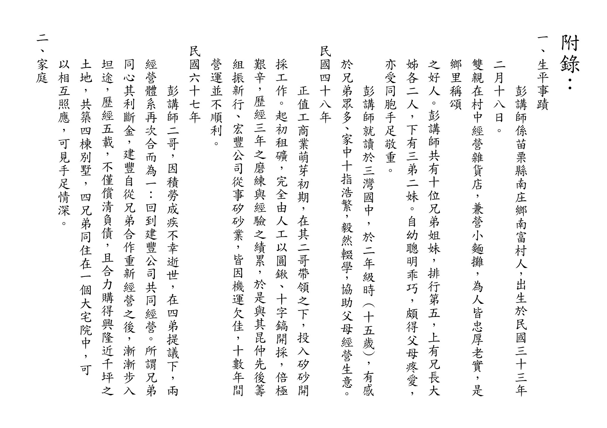 彭講師每踏出一步,皆留下令人懷念的足跡。若非修道、辦 道,終其一生規矩做人,在社會上也不過是個成功的企業家,在 家庭裡只不過是個好丈夫、好父親、好爺爺而已。由於根基緣份 深厚,來歷非凡,得遇明師,求得天道,在事業有成之際,能認 理實修,這份勇於承擔責任的精神,實屬難能可貴。